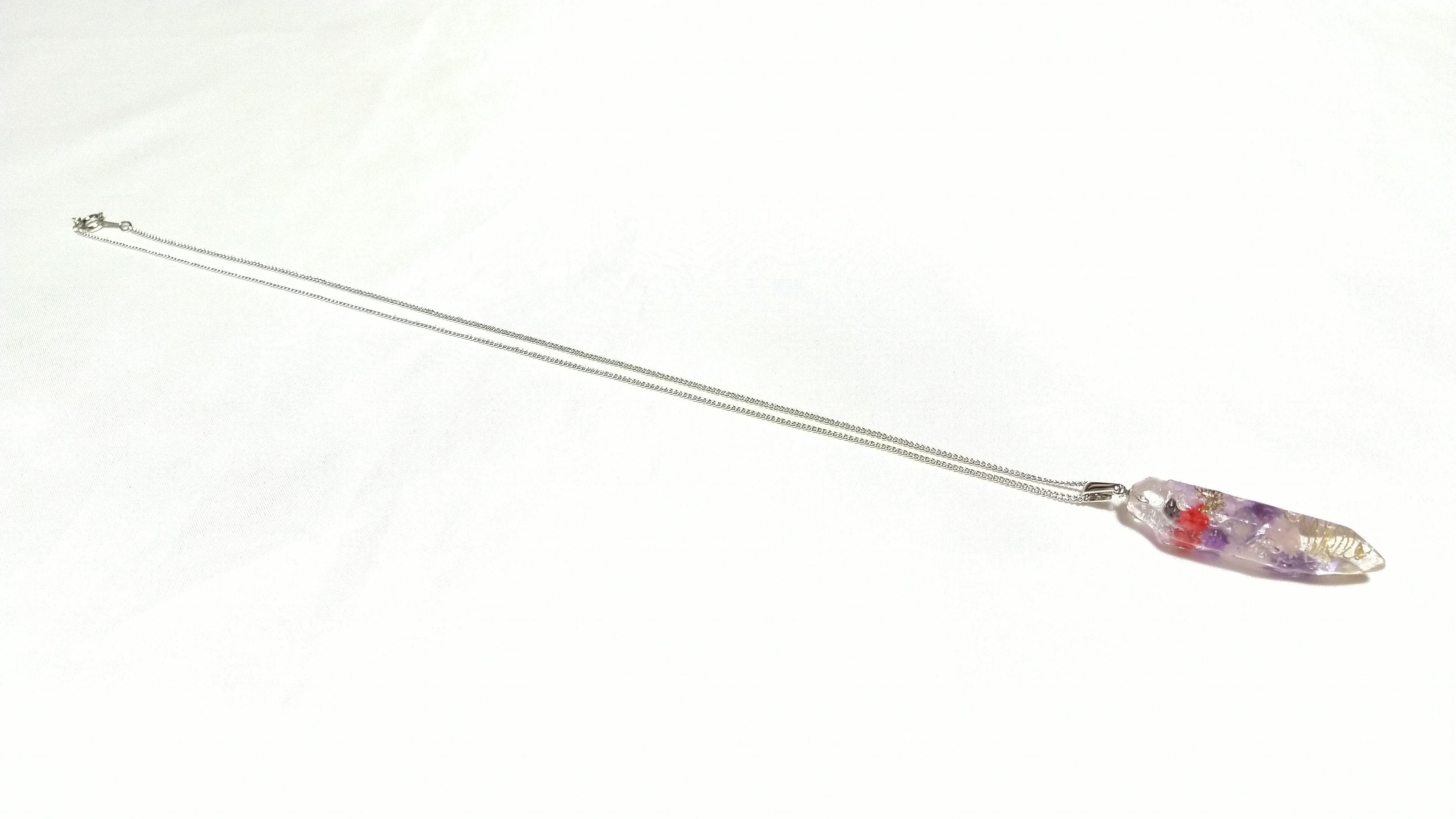 アメジストとローズクォーツのポイント水晶型オルゴナイトパワーペンダント