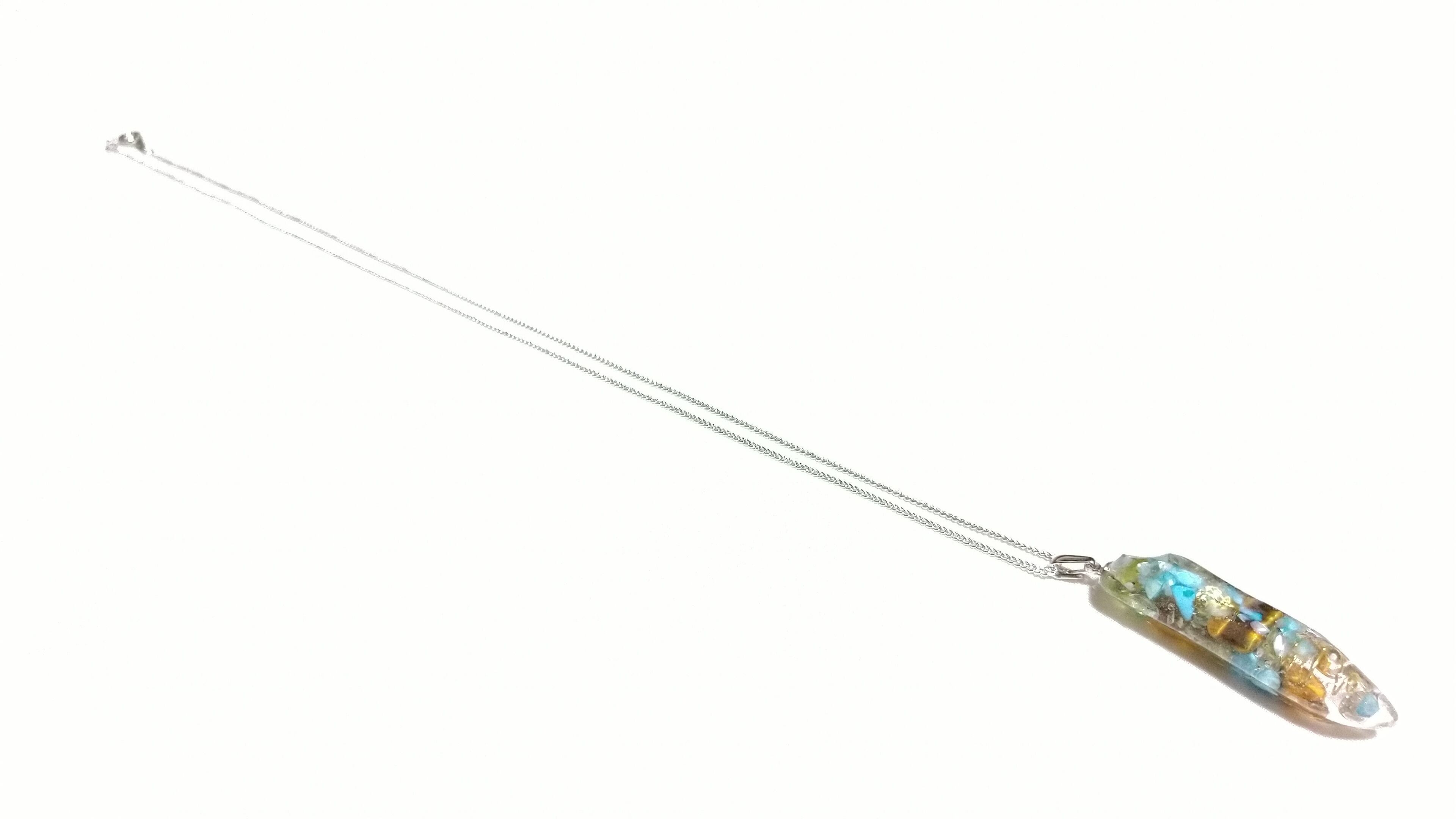 ターコイズとタイガーアイのオルゴナイトパワーペンダント (P0025)
