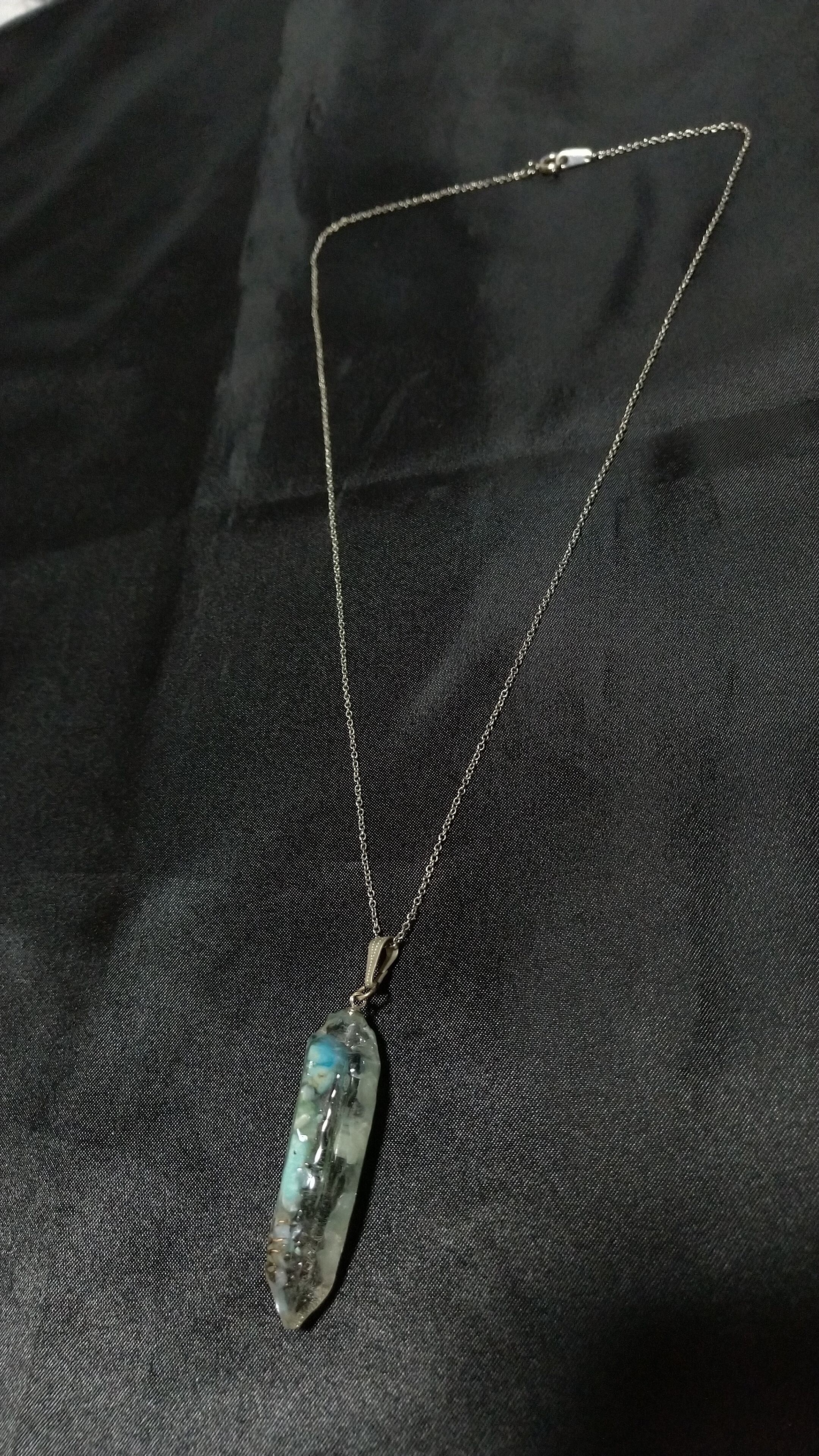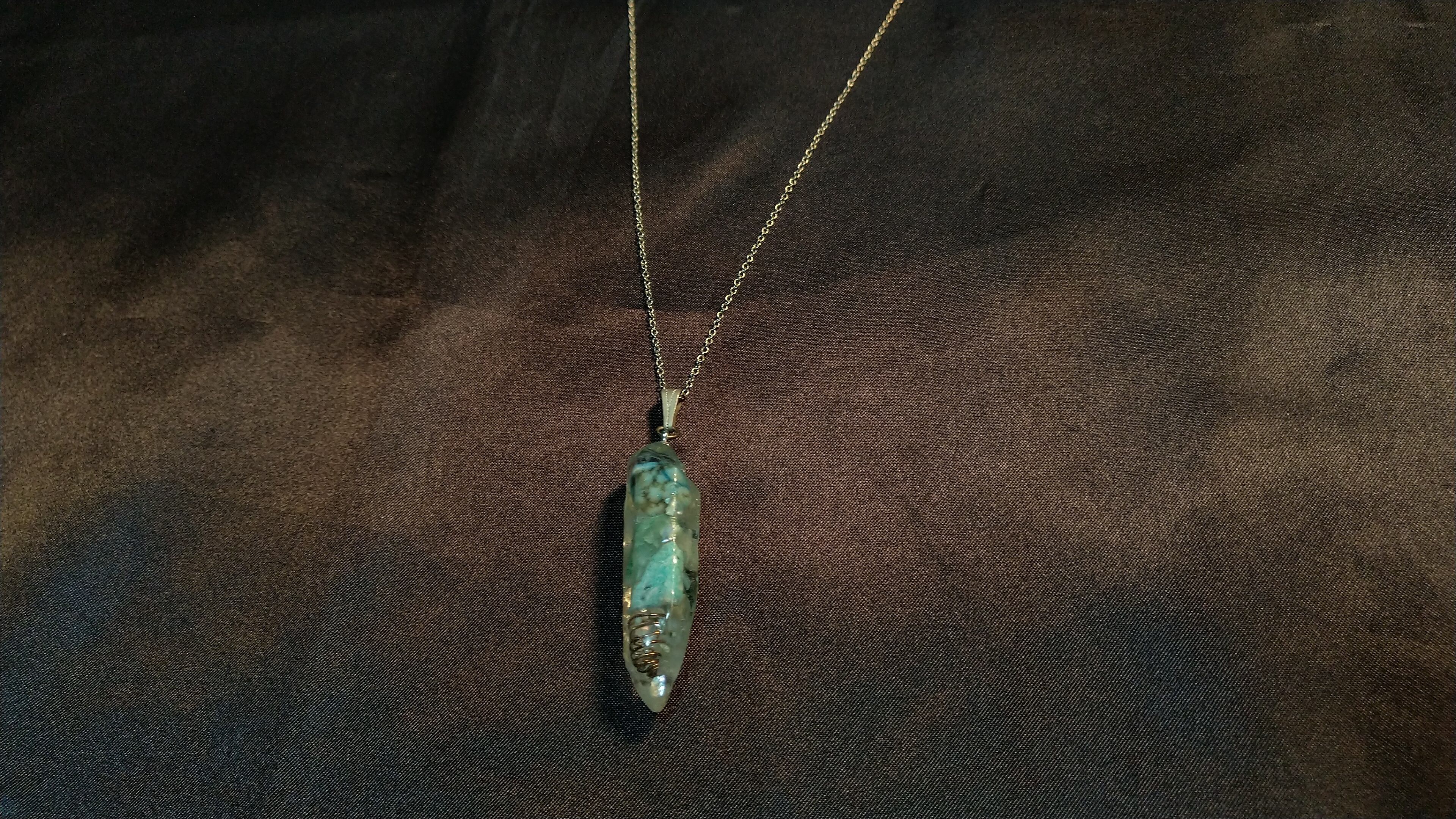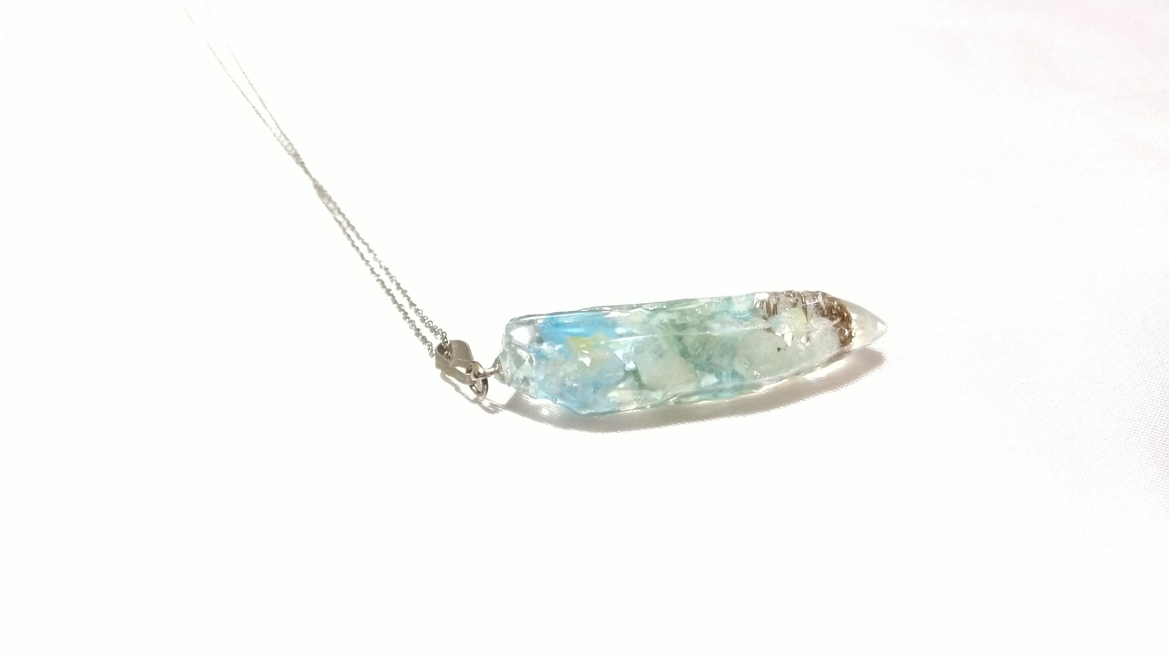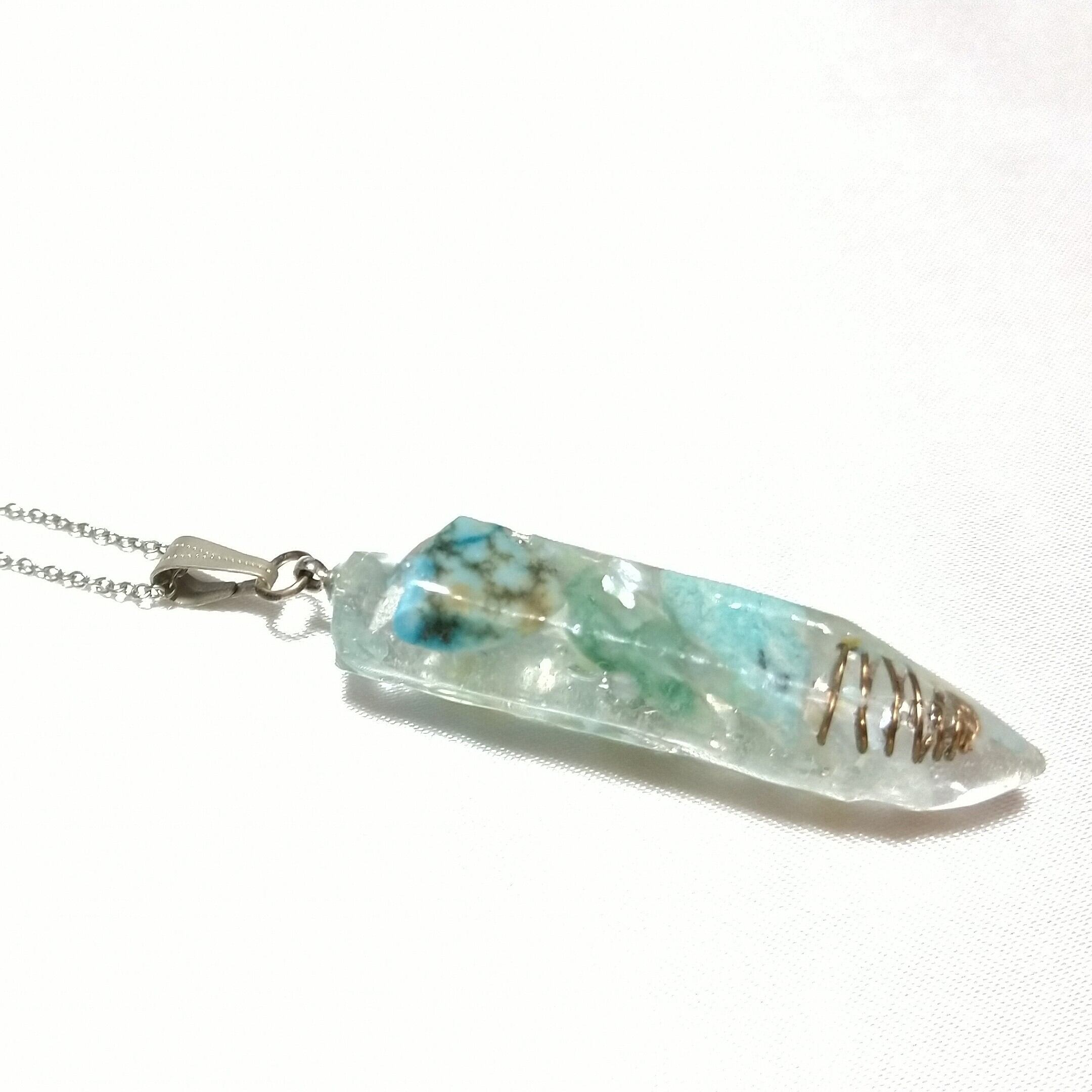 ターコイズとアクアマリンのポイント水晶型オルゴナイトパワーペンダント