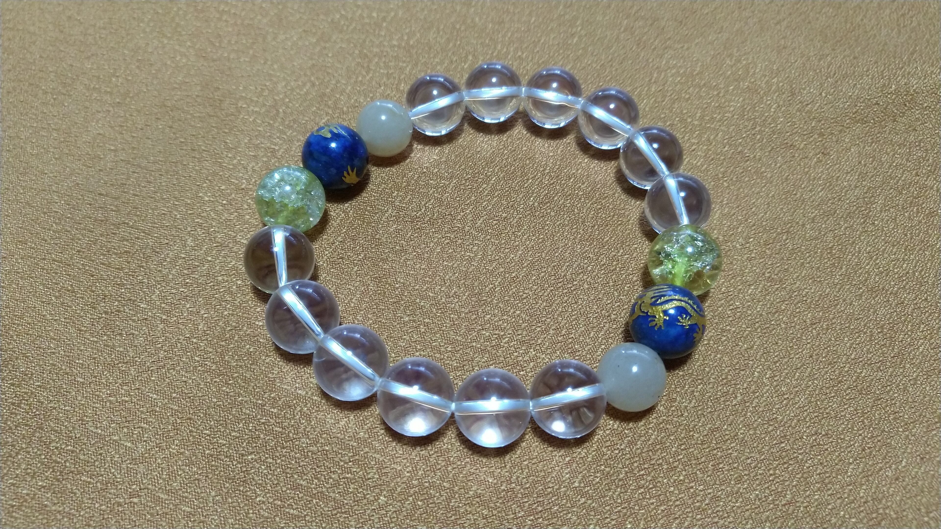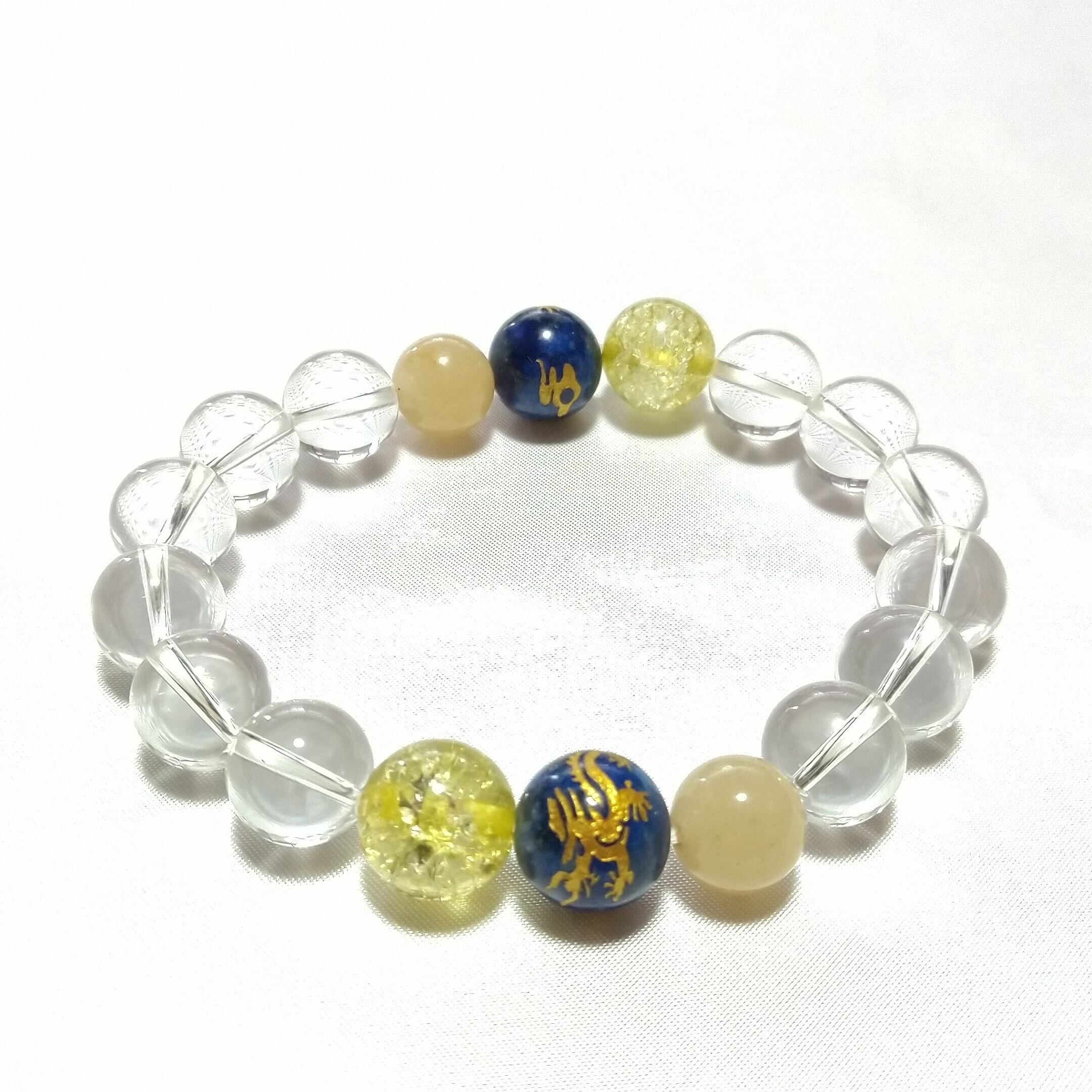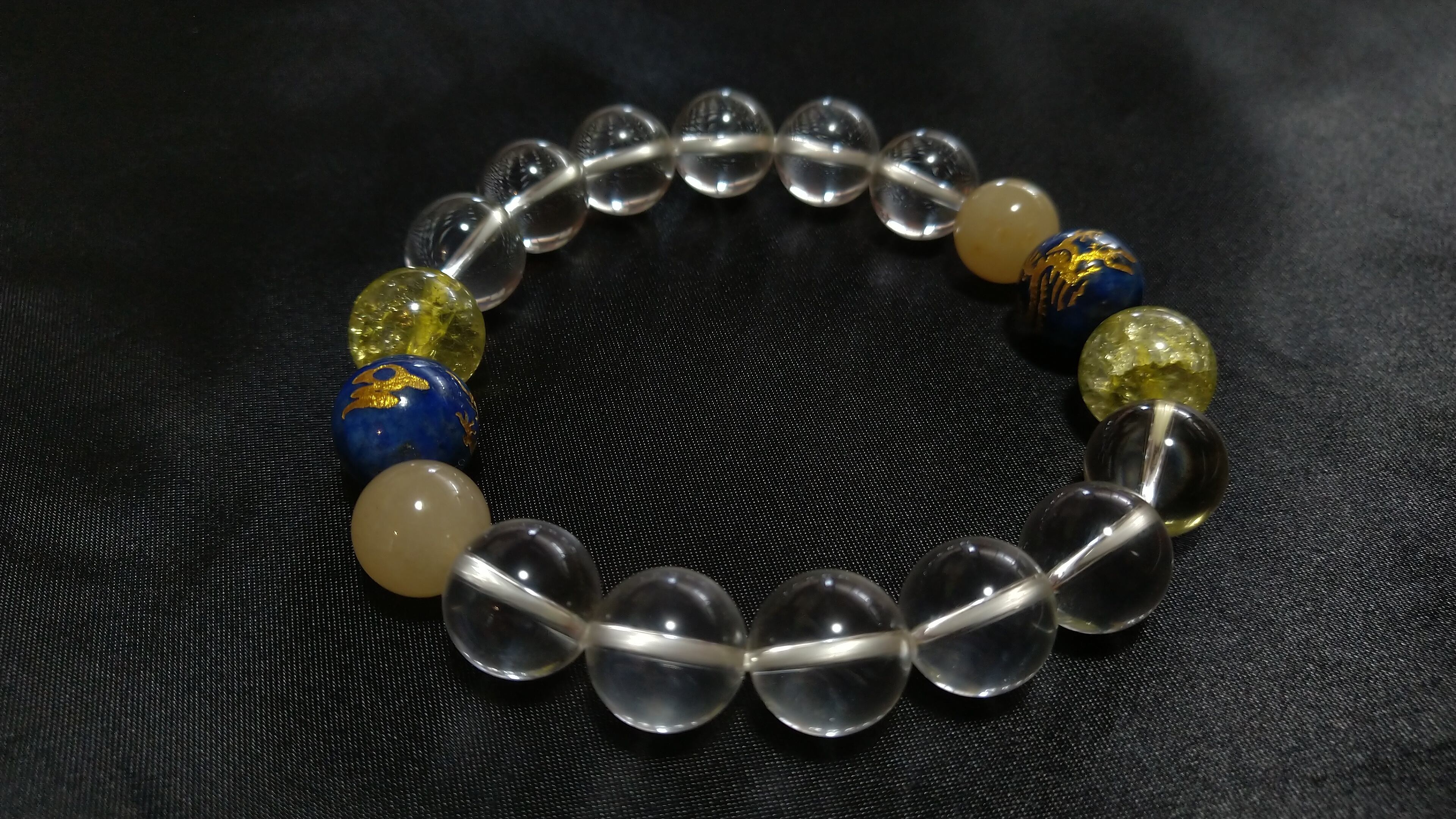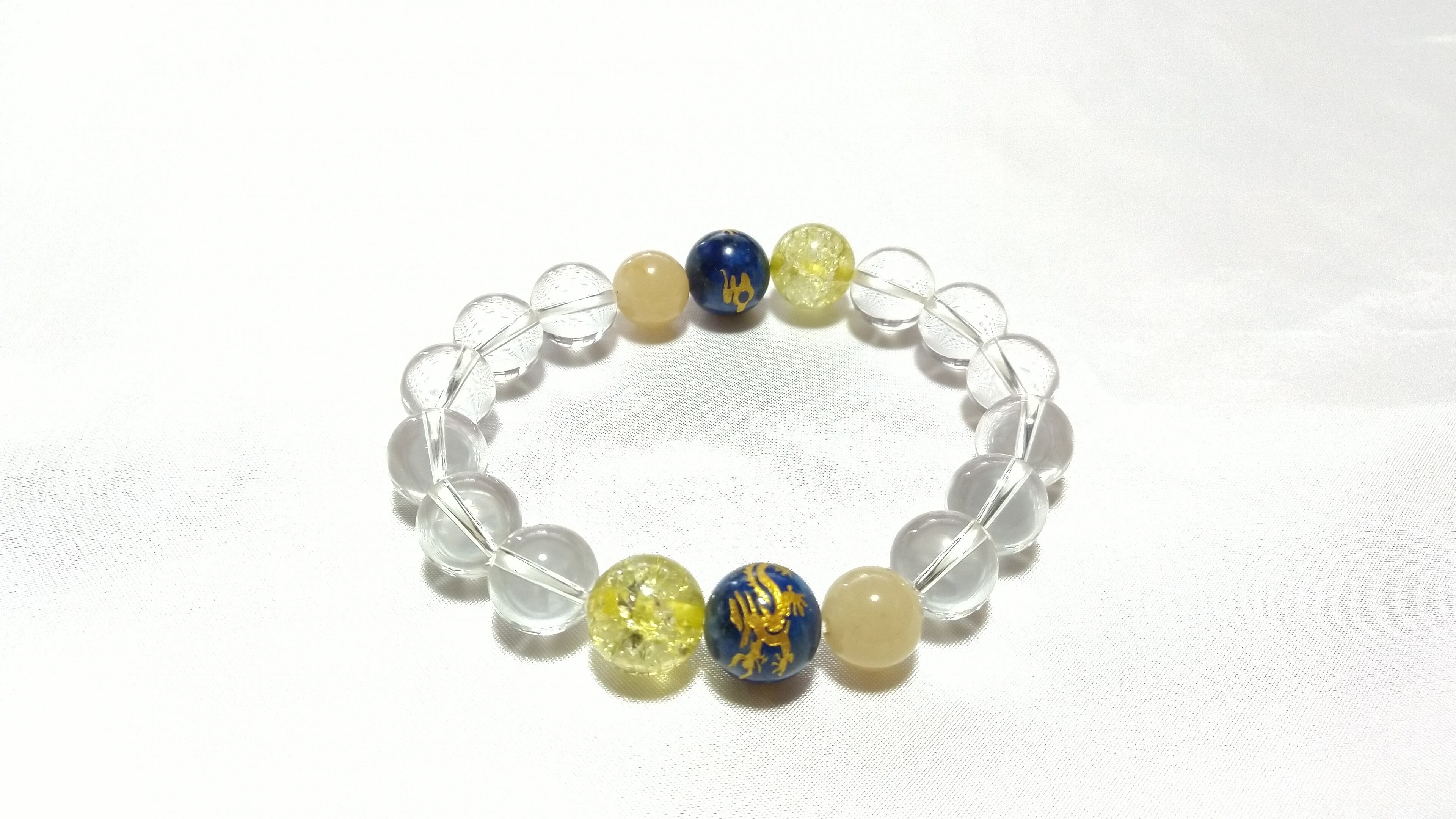 黄緑水晶と青龍彫りラピスラズリのブレスレット