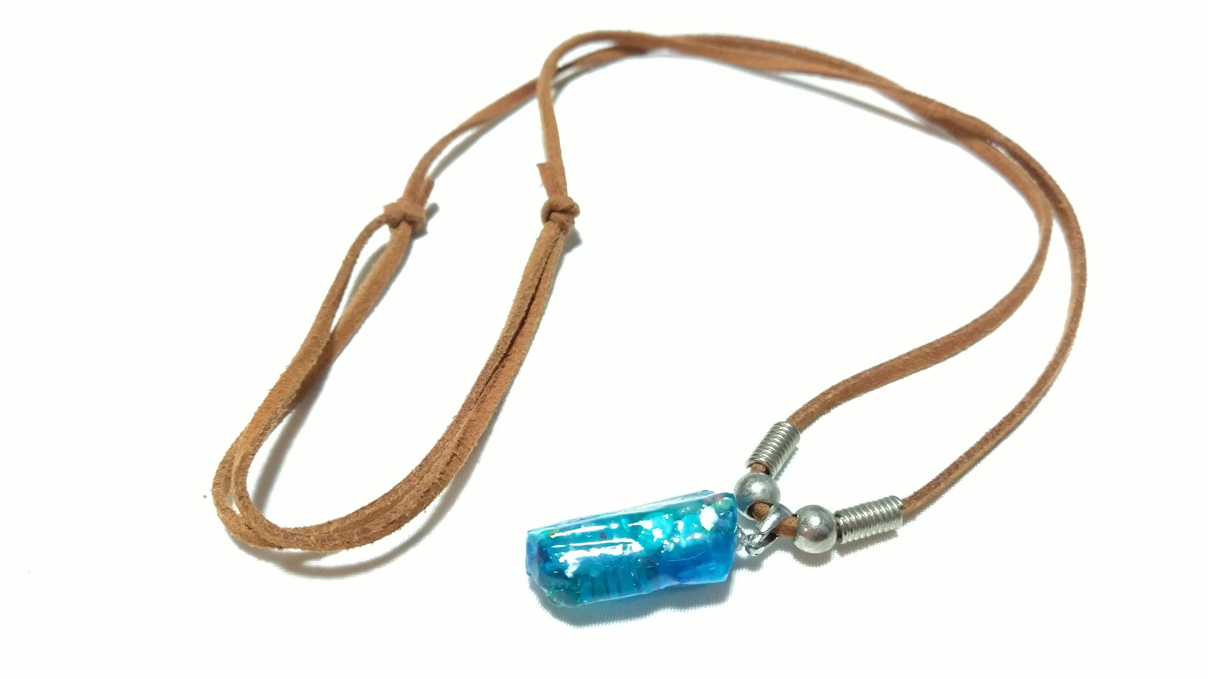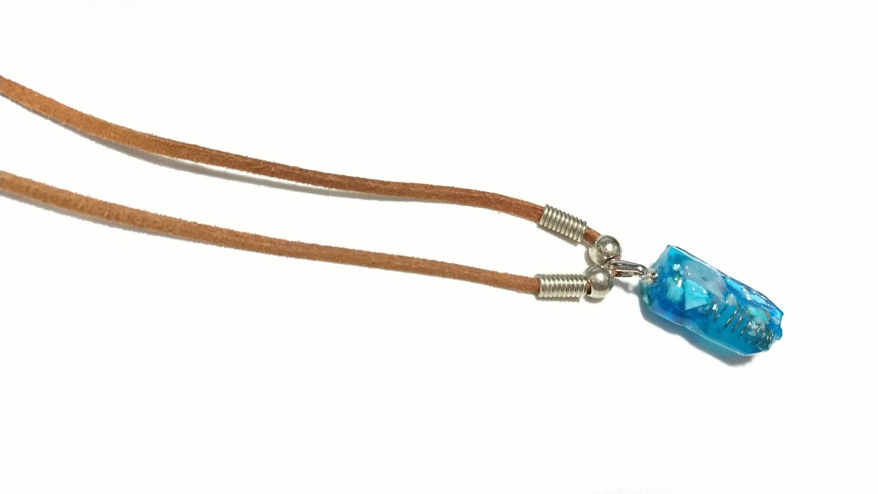 水色は空の色であり、誠実さを表す色とされています。周囲を平和や冷静な状態に導く色であり、水色は信頼を得やすくなる効果があると言われます。 また、心を落ち着かせる効果があります。穏やかな心が保てますようにと祈りを込めた水色の太陽の光をイメージしたオルゴナイトパワーペンダントです。