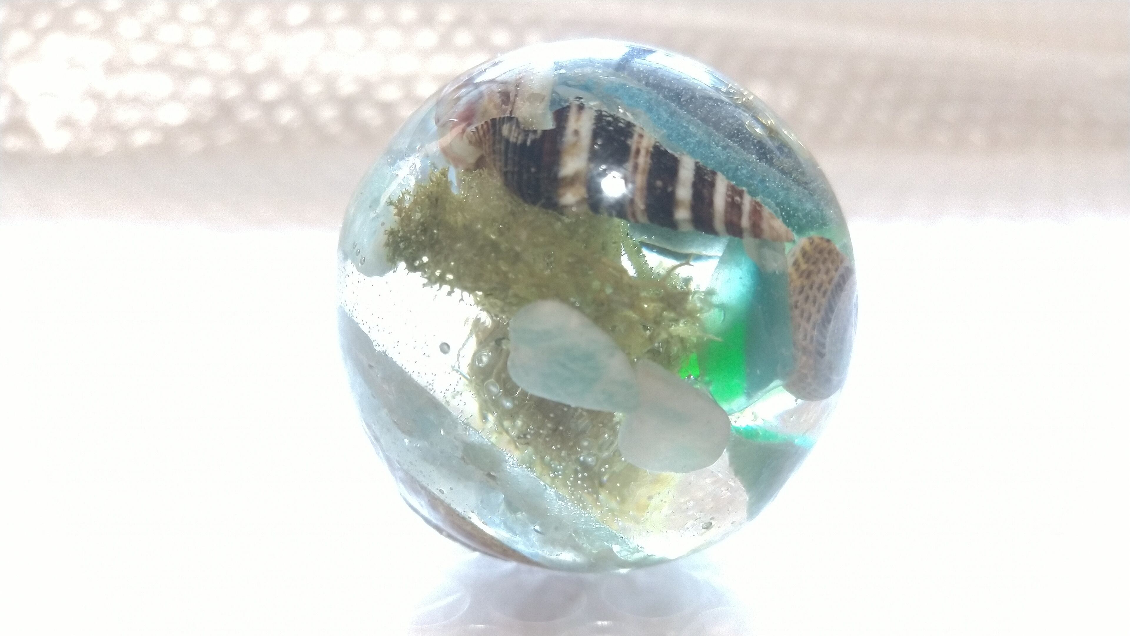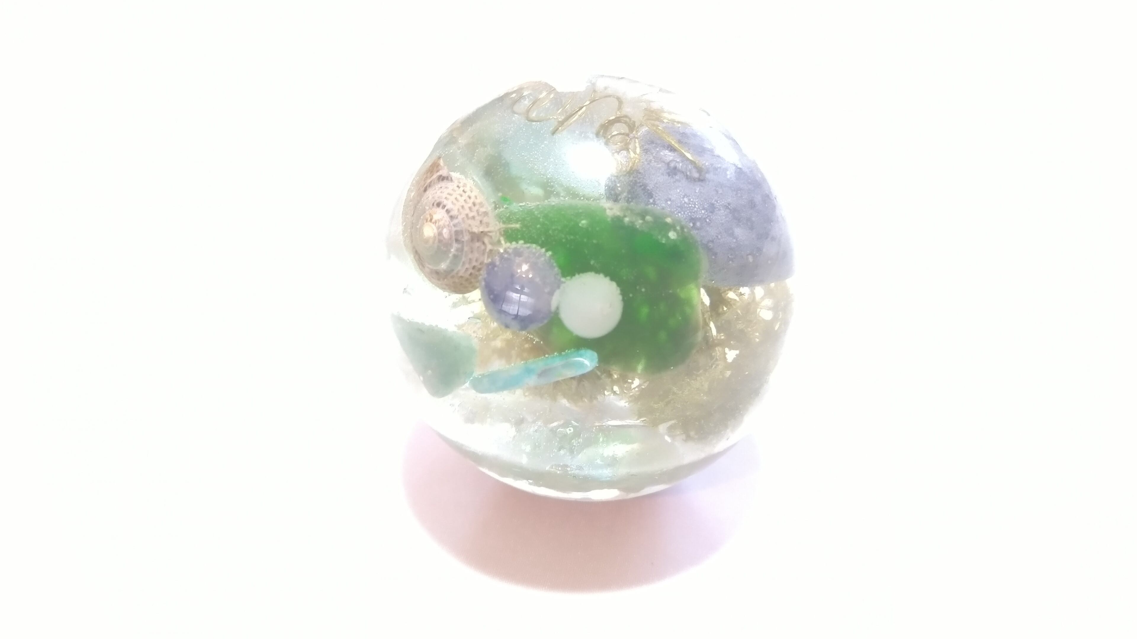 素材 : クリスタルレジン、天然石、金属ワイヤー、貝殻、砂、シーグラス