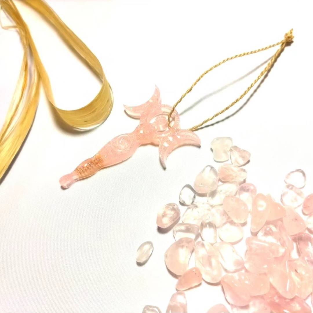 ぜひこのローズクォーツの女神オルゴナイトを身に着けて、女神のような輝きとやさしさを感じてください。自分へのご褒美や大切な人へのプレゼントにも最適です。